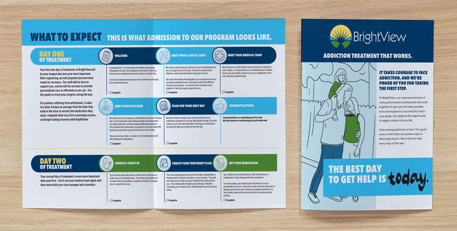 BrightView, a company dedicated to helping people with substance use disorder, initially engaged us when they had only two centers open. Over the course of five years, we developed a robust brand identity that aligned with their mission and goals as they began expanding their reach.