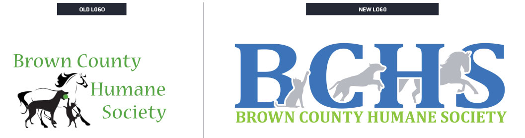 Brown County Humane Society, a rural county shelter, approached us to design a new logo that would resonate with their community. The new logo needed to incorporate elements from their old logo, featuring a dog, cat, and horse, to maintain familiarity while updating their image.