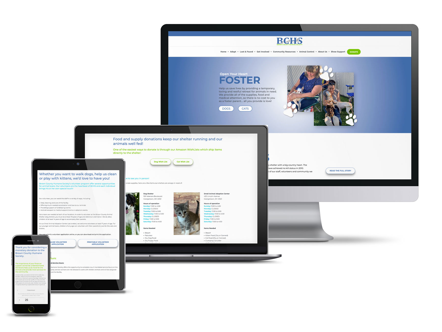 Since the website’s launch, Brown County Humane Society has received: