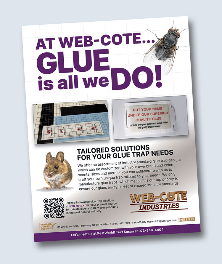 - Web-Cote are well known in the professional pest control market for our industry leading trapping adhesives, innovative ideas, friendly service, 100% USA made products with US manufactured materials, and for being the only exclusively private label producer in the business. We take great pride in the fact that the products we produce are an integral part of preserving the health and safety of people worldwide. Our customer base includes companies of all sizes – from small PCO’s to Fortune 500 companies.